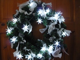 I do like to add a tree decoration to each present as a little extra.I enjoy the whole angst about buying the right present and take a lot of pleasure in the wrapping usually,but due to a lot of sad news this year my heart was not really in it .I also half heartedly did the decorations.The tree was up a whole weeek with only lights on it..I went for a homespun look of sorts with accents of red and turquoise.